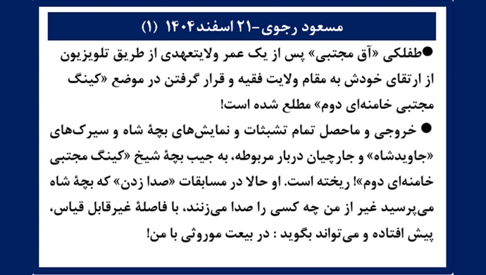 و قرار گرفتن در موضع «کینگ مجتبی خامنهای دوم» مطلع شده است!